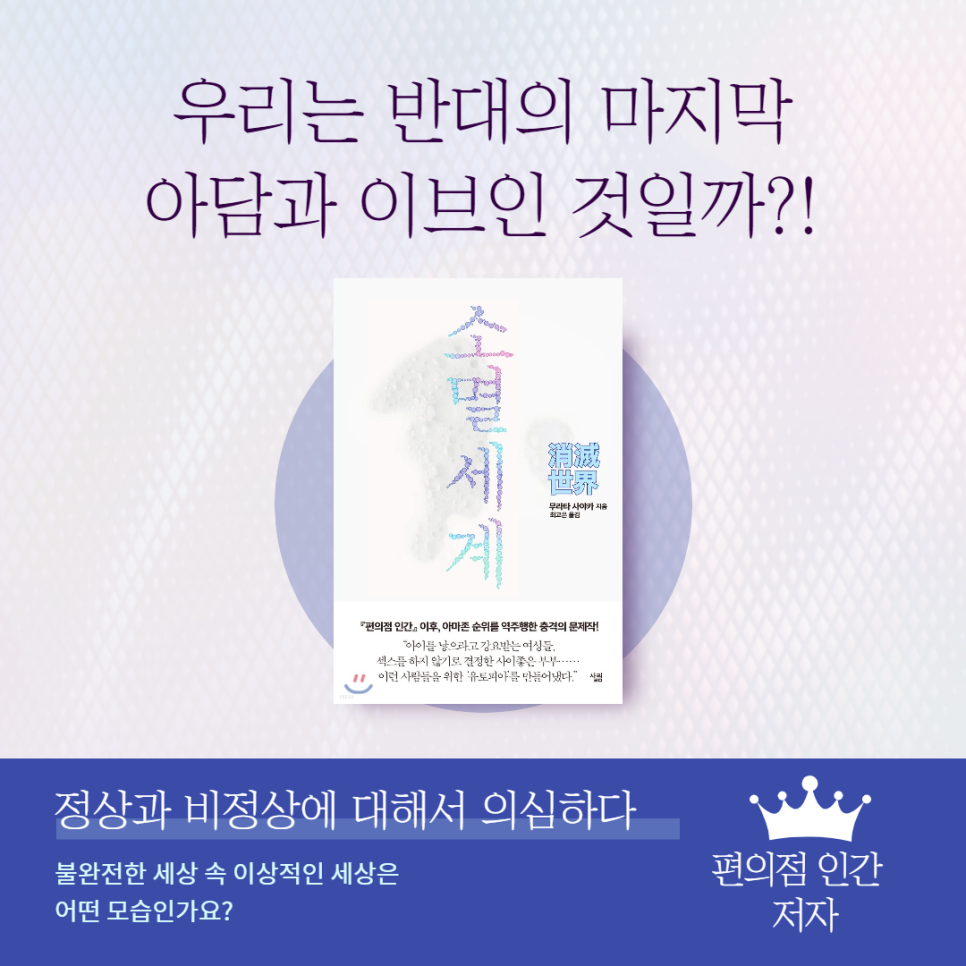 소멸세계의 작자는 무라타 사야카라는 작가이자 즐거워진 편의점 인간이라는 책의 동일 작가였습니다.